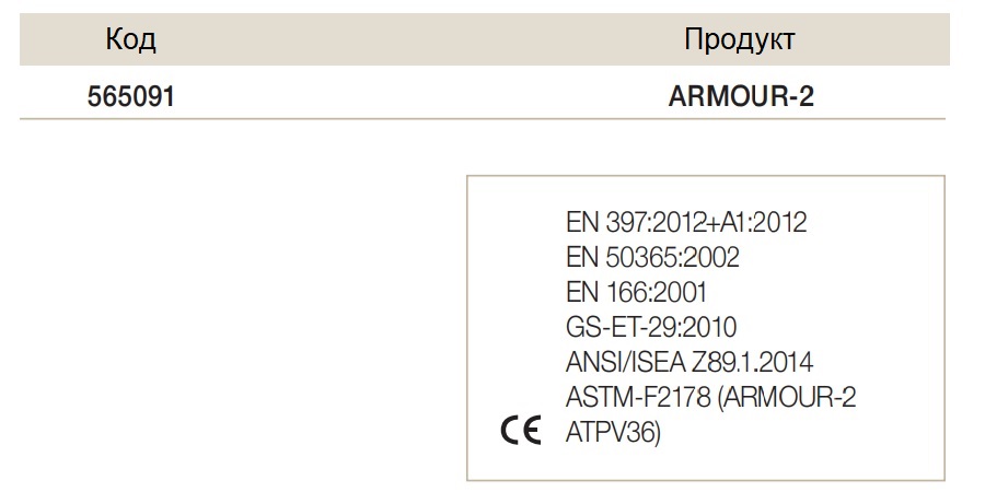 Съответствие със стандартите ANSI Z89.1; EN 397; EN 50365.