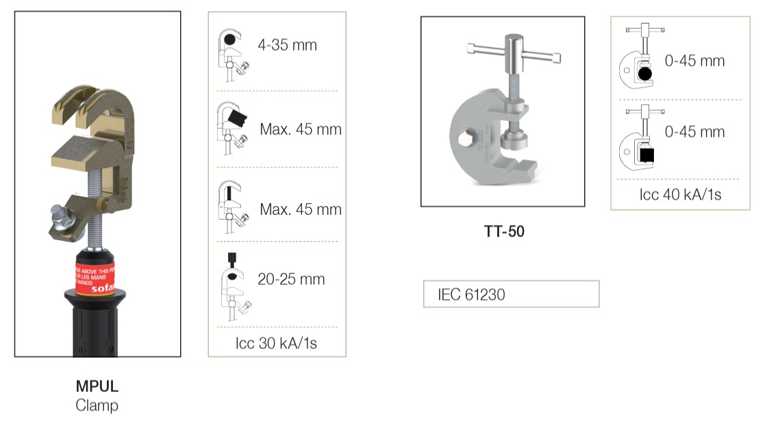 • 4 винтови скоби MPUЕ от алуминиева сплав с изолирана ръкохватка
