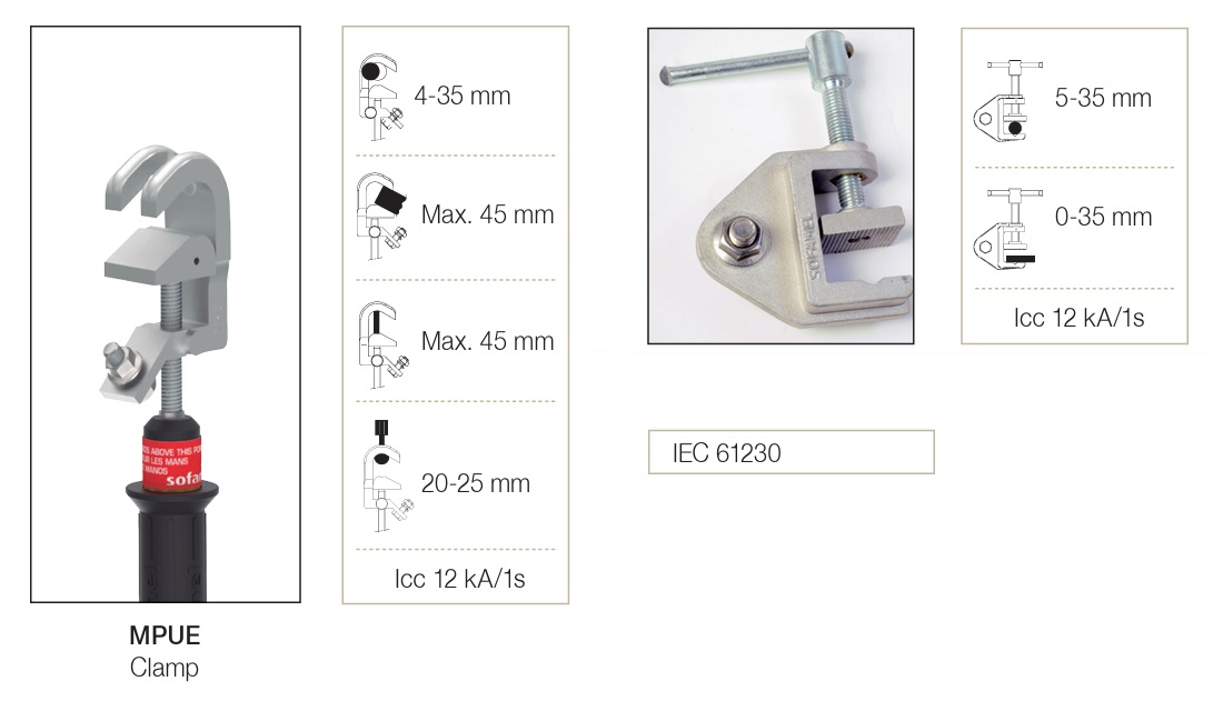 • 4 винтови скоби MPUЕ от алуминиева сплав с изолирана ръкохватка.